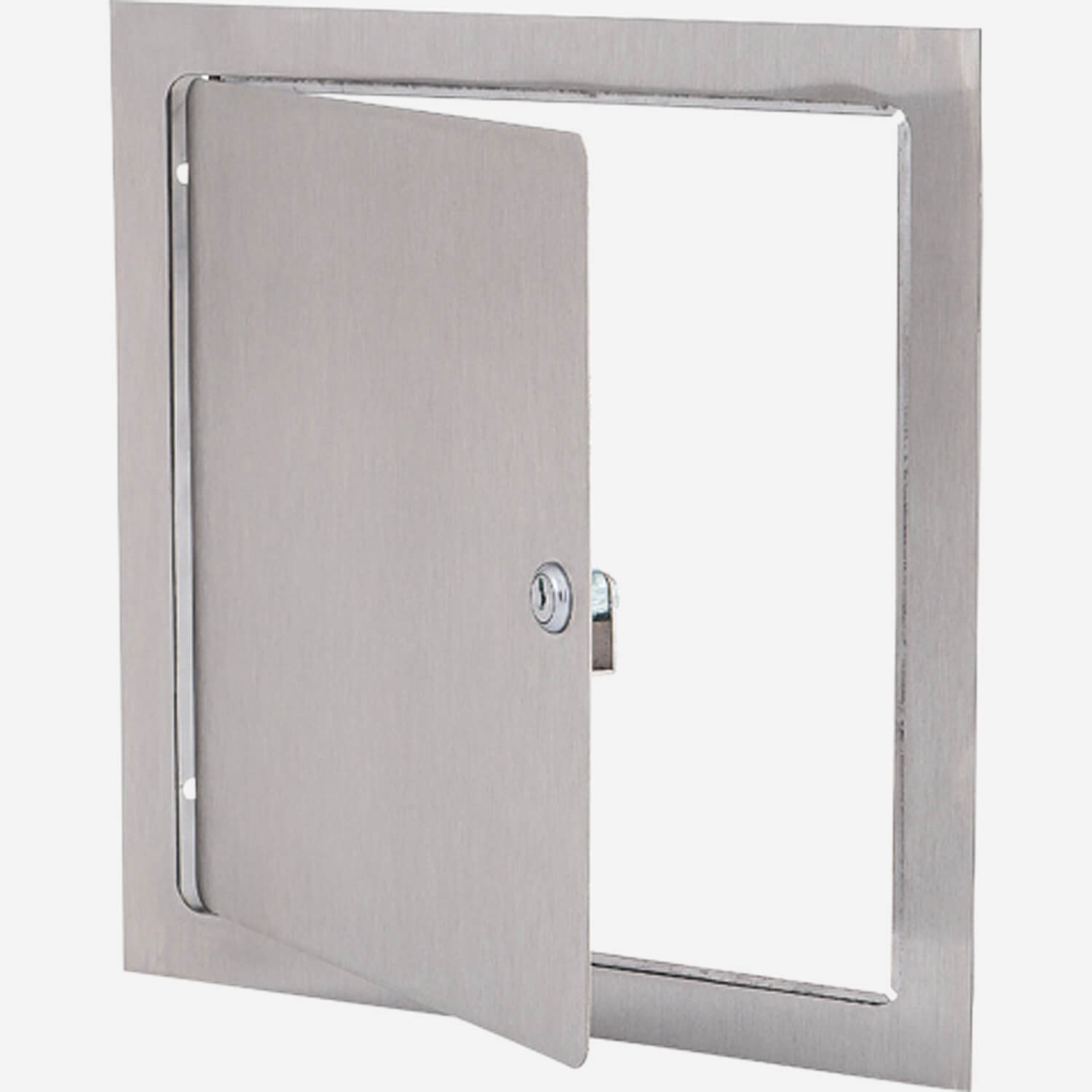 Access door and frame shall be fabricated from 16 gauge, galvannealed steel with a prime coat finish suitable for painting. The door shall have rounded safety corners and a concealed piano hinge. Frame shall be one-piece construction with no miters or welds on the face. Latch shall be screwdriver operated.Popular options include
