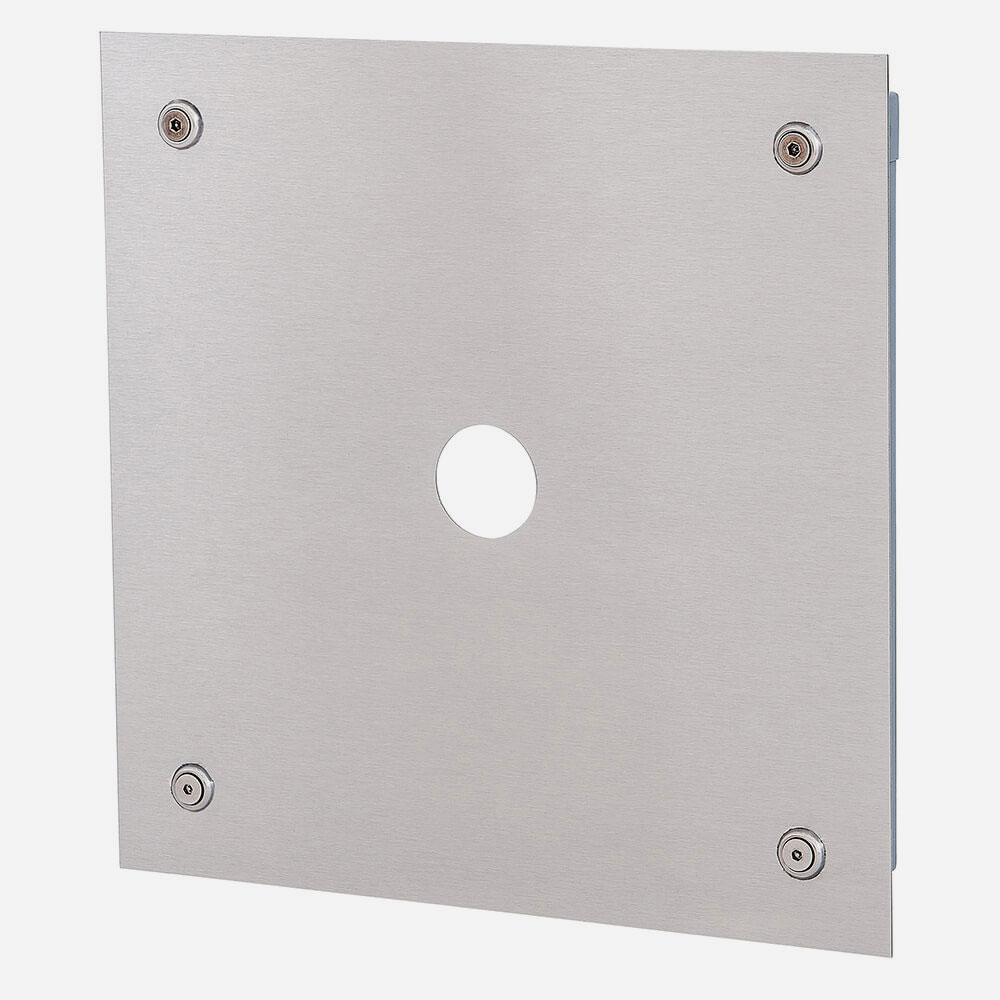 Wall panel shall be fabricated from 14 gauge, type 304, stainless steel with a satin finish on the exposed surface. The frame shall be 16 gauge jet coat steel with a prime coat and shall have mounting holes. The panel shall be secured to the frame with four tamper-resistant, stainless steel screws.