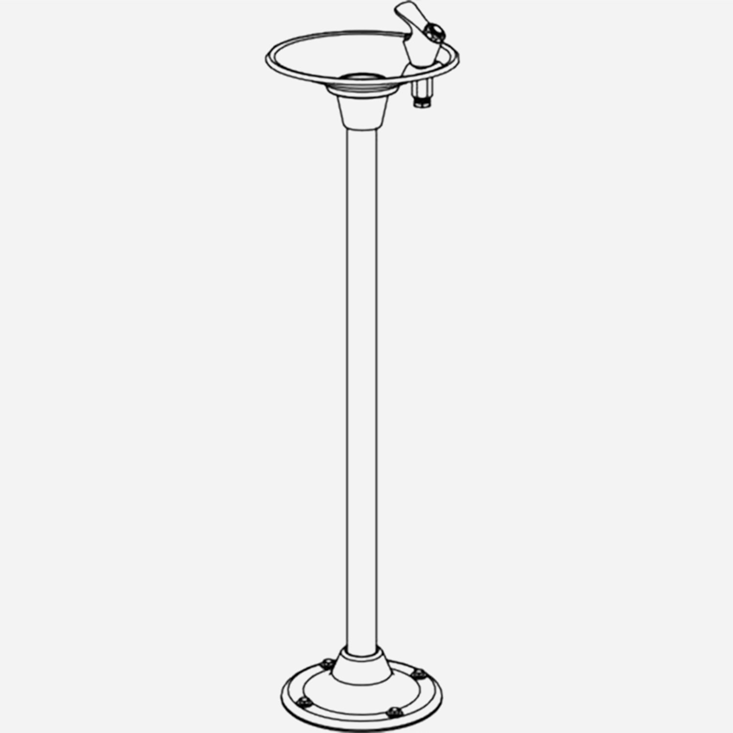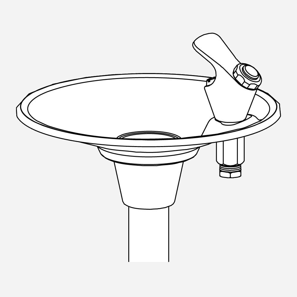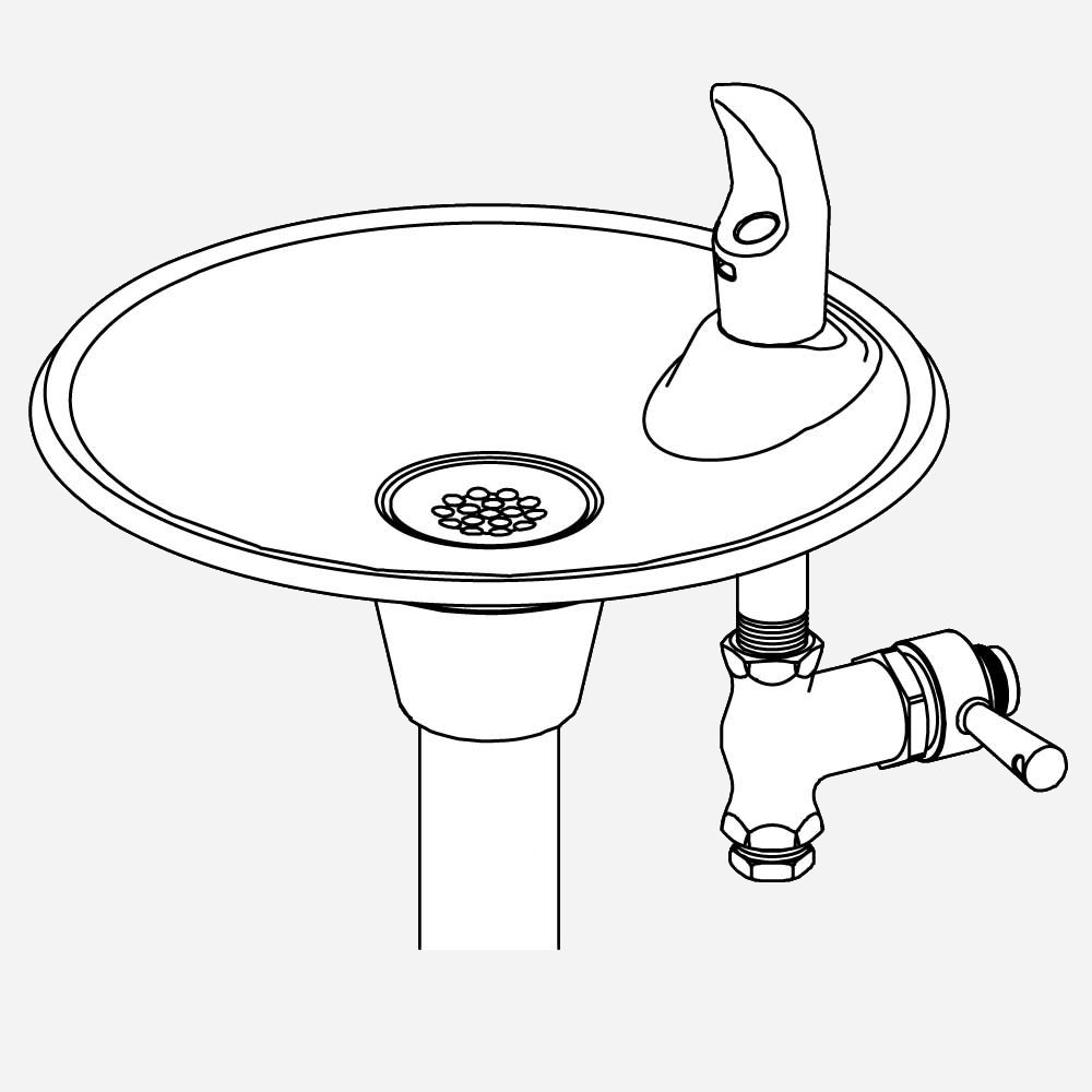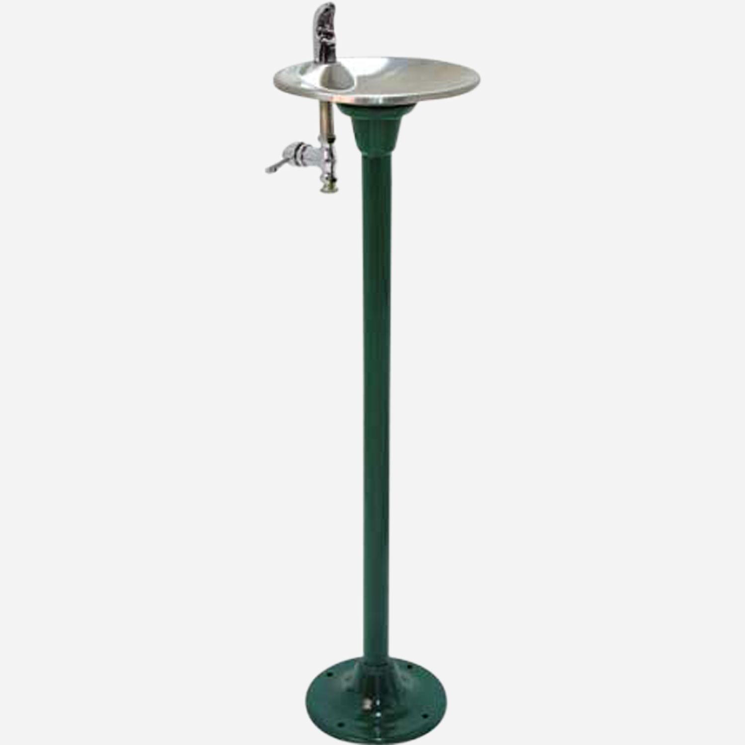 This pedestal-mounted drinking fountain is constructed from an 18 gauge, 304 stainless steel bowl mounted onto a heavy-duty steel pipe pedestal. The basin flange, the pipe pedestal, and the floor flange are available are powder-coated in Textured Fairway Green, Textured Alpine Blue, or Textured Firehouse Red. The unit features lever or pushbutton operation and a lead-free, polished stainless steel bubbler. This outdoor drinking fountain can withstand sunlight, heat, moisture, and wear.
