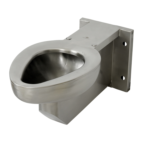 16 gage 304 stainless steel front mounted off-floor Siphon Jet toilet with wall waste; toilet requires 25 psi (172 kpa) water supply and operate with as little as 1.28 GPF (4.85 LPF)Specify Top Supply or Wall Supply configurations